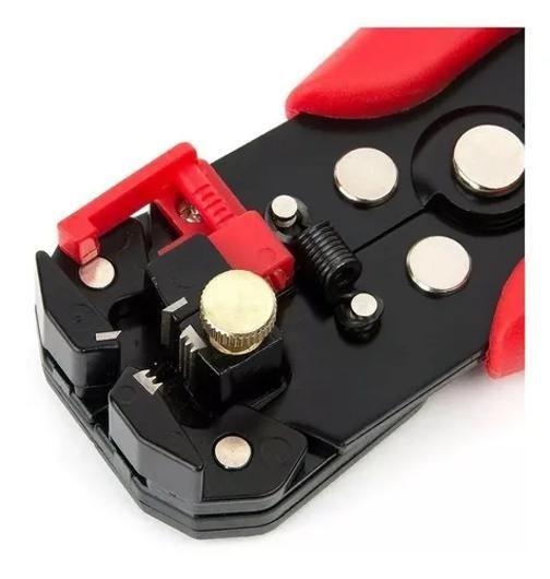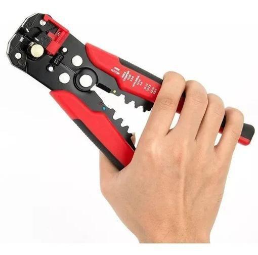 Alicate Automático Decapador E Crimpador – 5 Em 1 Alicate crimpador automático, cabo ergonômico, partes em plástico técnico para maior durabilidade e resistência, reforçado com revestimento de borracha, com batente ajustador de comprimento (desencapa sempre no comprimento desejado), e pino regulador da intensidade da força, corpo em aço carbono temperado e fosfatado, próprio para uso continuo por fábricas e profissionais de eletricidade e telefonia.